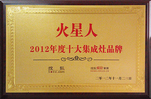 2012年度十大集成灶品牌(搜狐)大牌匾